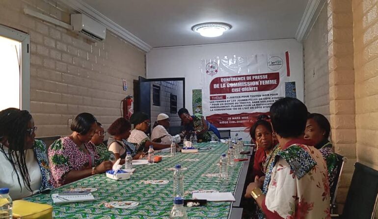 Abidjan, samedi 28 mars 2026 – La Commission Femmes de la CISL-DIGNITÉ a organisé, ce samedi 28 mars 2026, une conférence de presse à son siège sis aux Deux-Plateaux Aghien, Abidjan, autour du thème de la ratification de la Convention 190 de l’Organisation internationale du Travail (OIT).